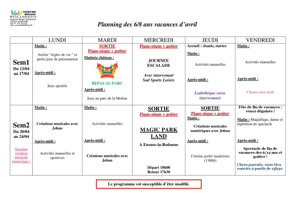Pour en savoir plus, vous pouvez consulter le REGLEMENT INTERIEUR DU CENTRE AERE, ou nous contacter.