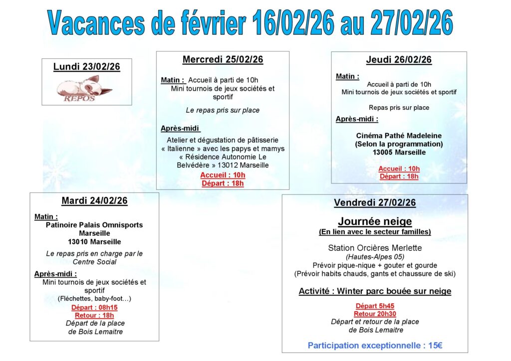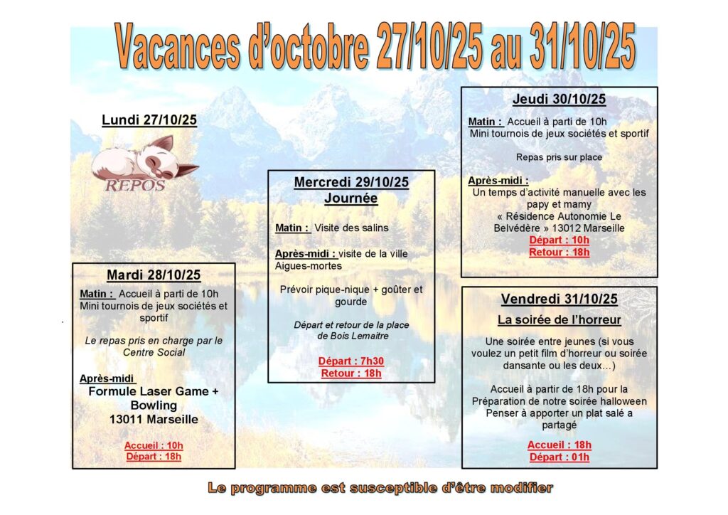 Différentes activités sont proposées tout au long de l’année, en période de vacances scolaires ou non.